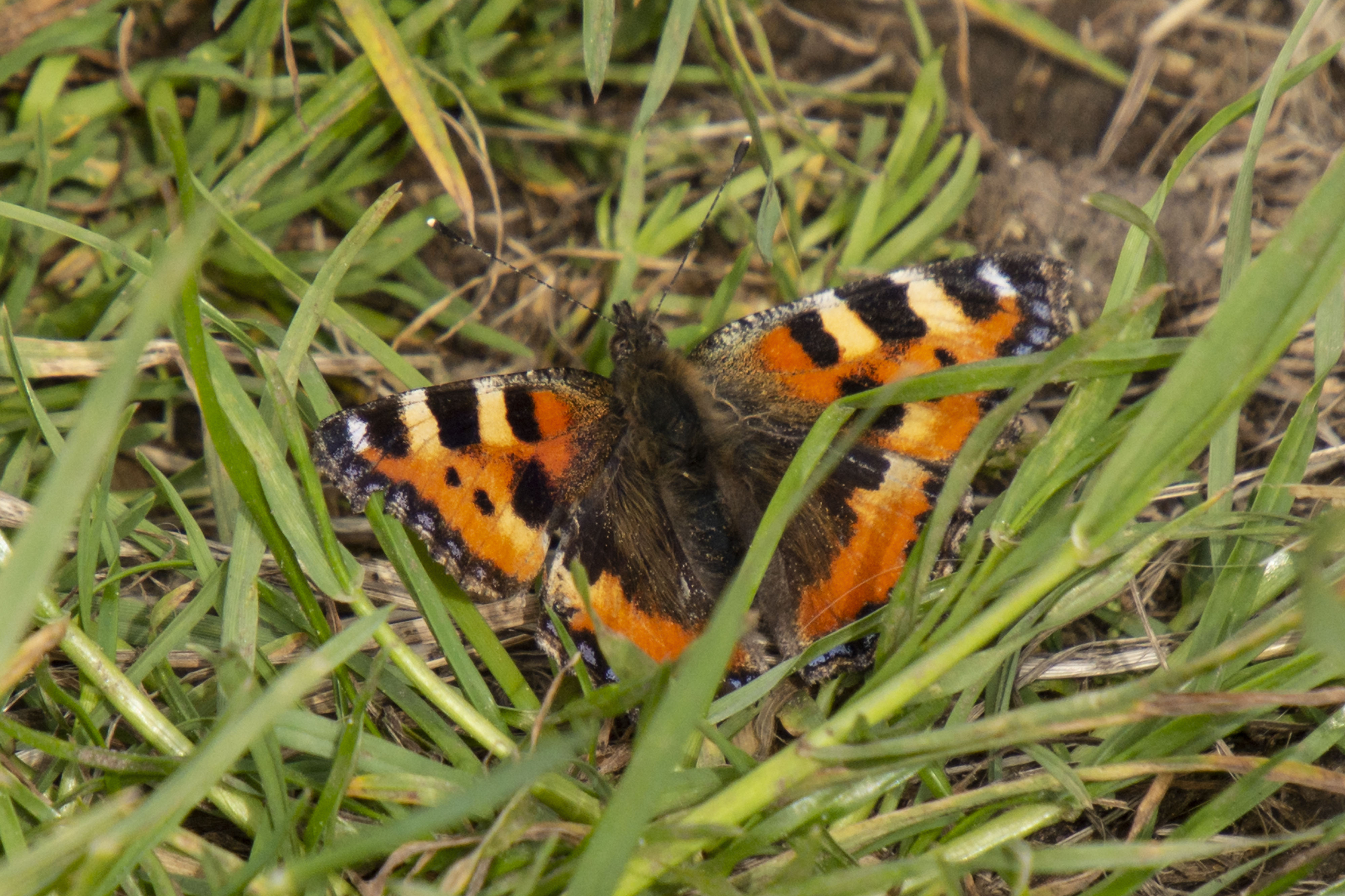 The Speckled Woods (above) have been around for a month or so now, but slowly others are beginning to emerge, like the Meadow Brown below, moving through the leaves like a shark through waves, and the Red Admiral and Small Tortoiseshell below that. Hopefully the first of many!