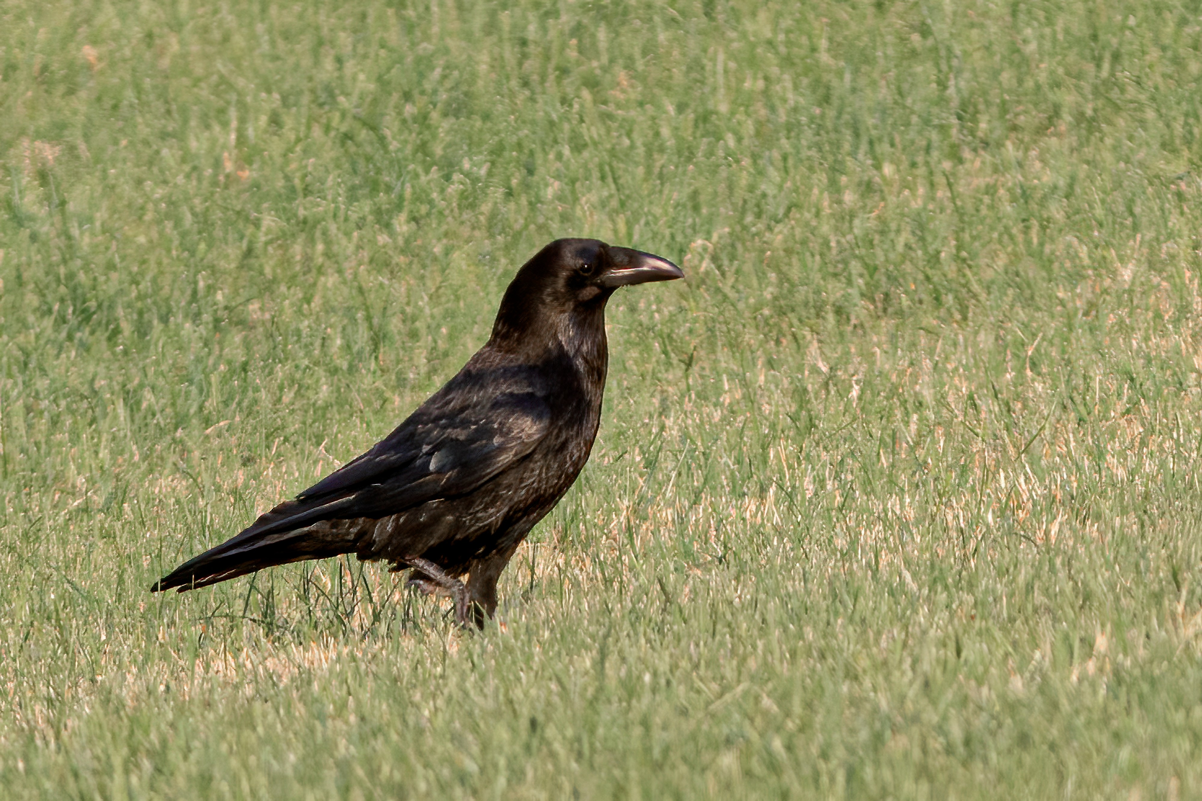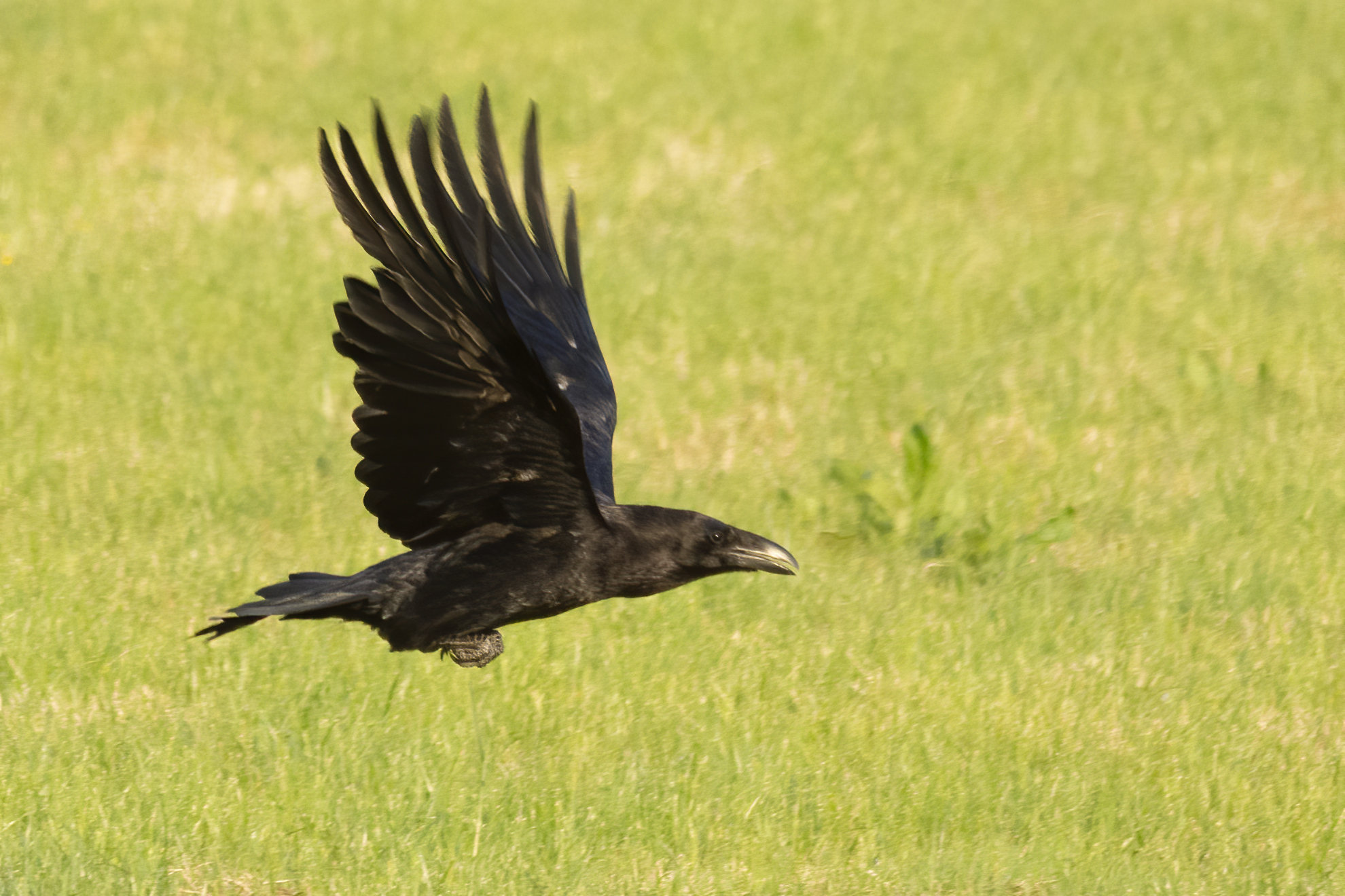 For the last few weeks, a pair of Ravens have been frequenting the field behind us. According to a Twitter friend, they are probably the same pair that have bred in Trent, a village a couple of miles away. Recently they brought first one of their offspring, and then a few days ago a second. I know Ravens are around, but they’re not something you expect to see from a Yeovil outskirts bedroom window!