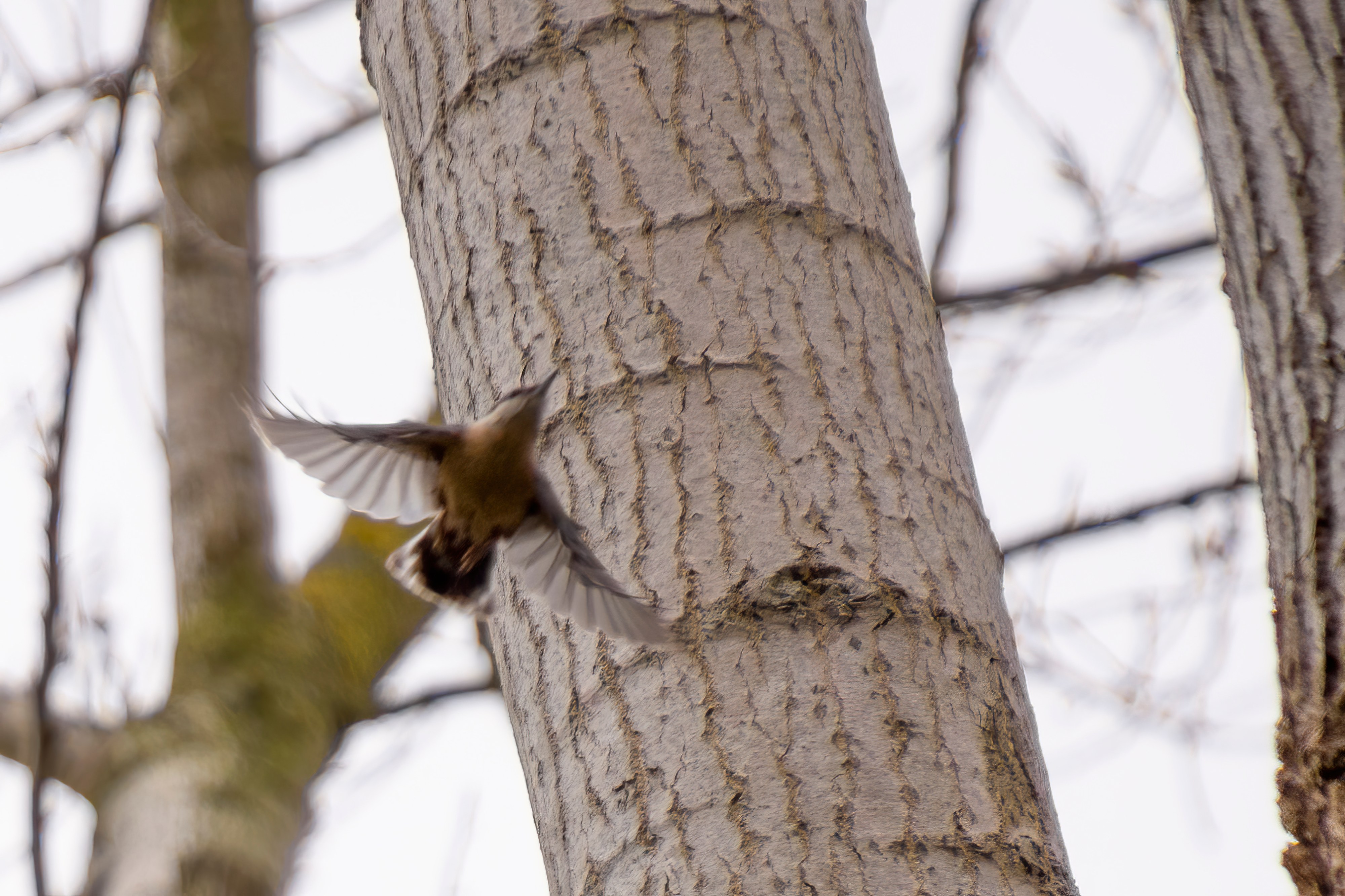 …then emerged, fortunately without any prey, to the relief of the helpless Nuthatch watching.