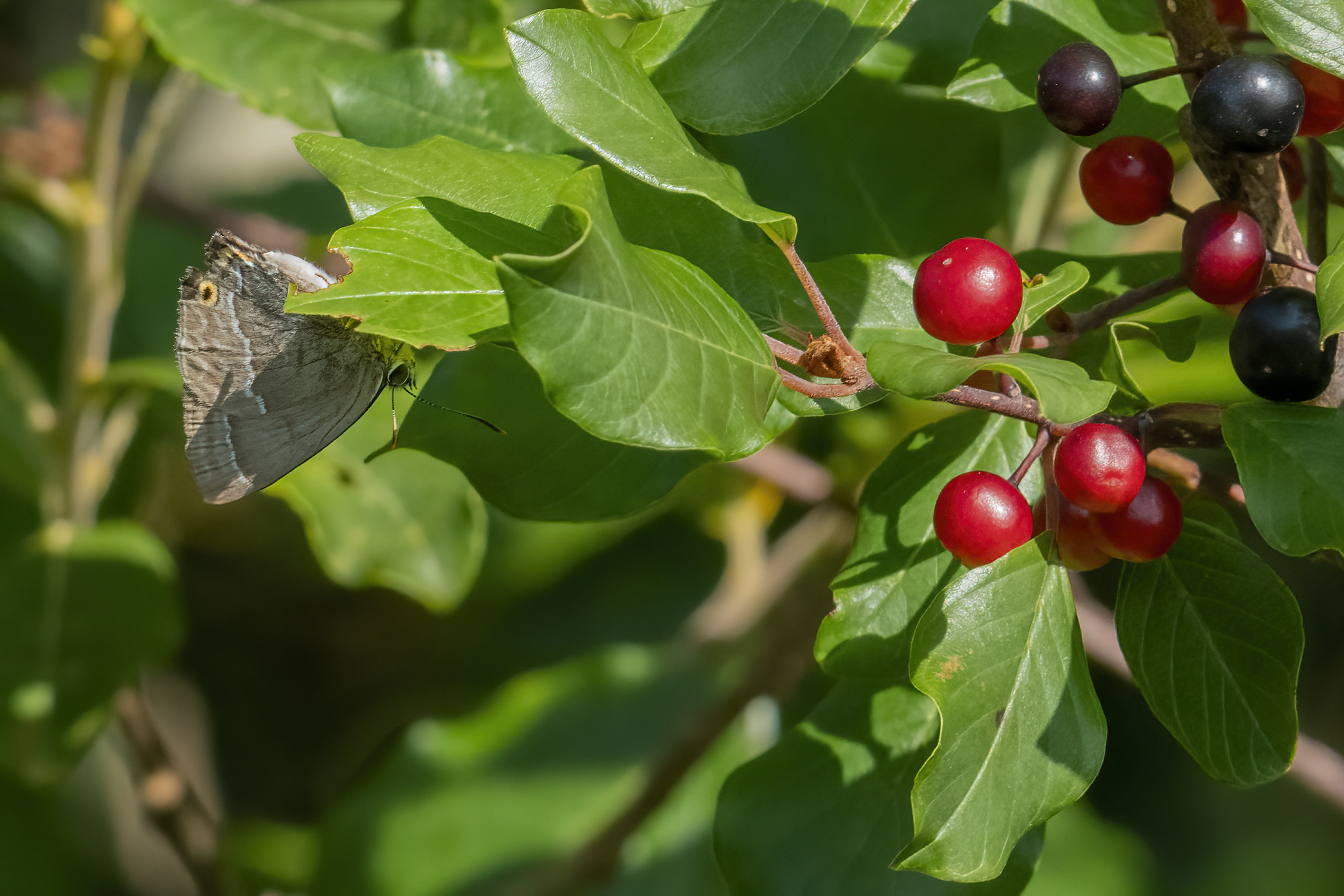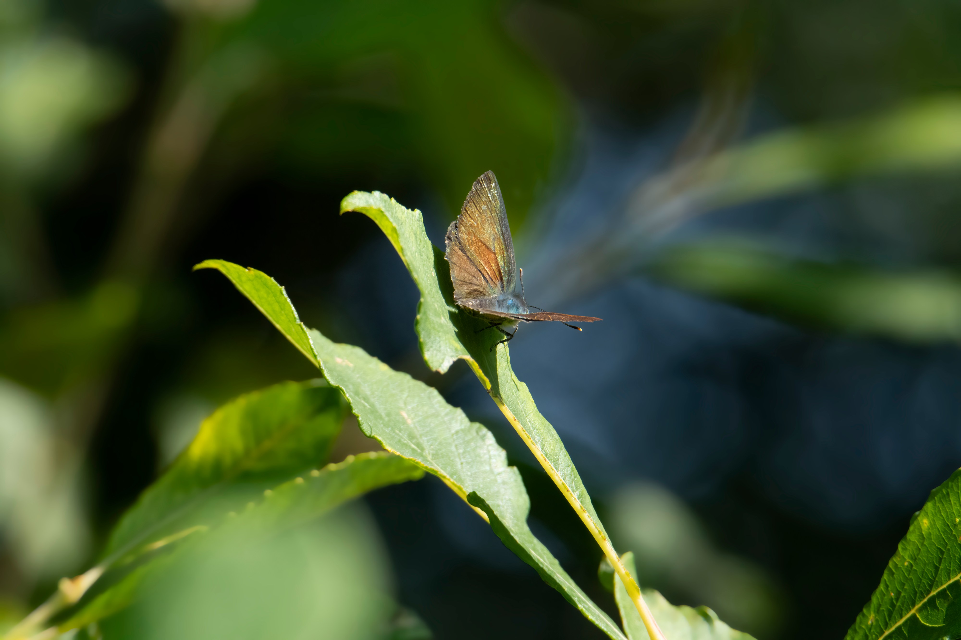 Purple Hairstreak (female). The ‘purpleness’ often wears off in older specimens it seems, but this one still has a hint of it on the leading edge of its wing. My first ever Purple Hairstreak!
