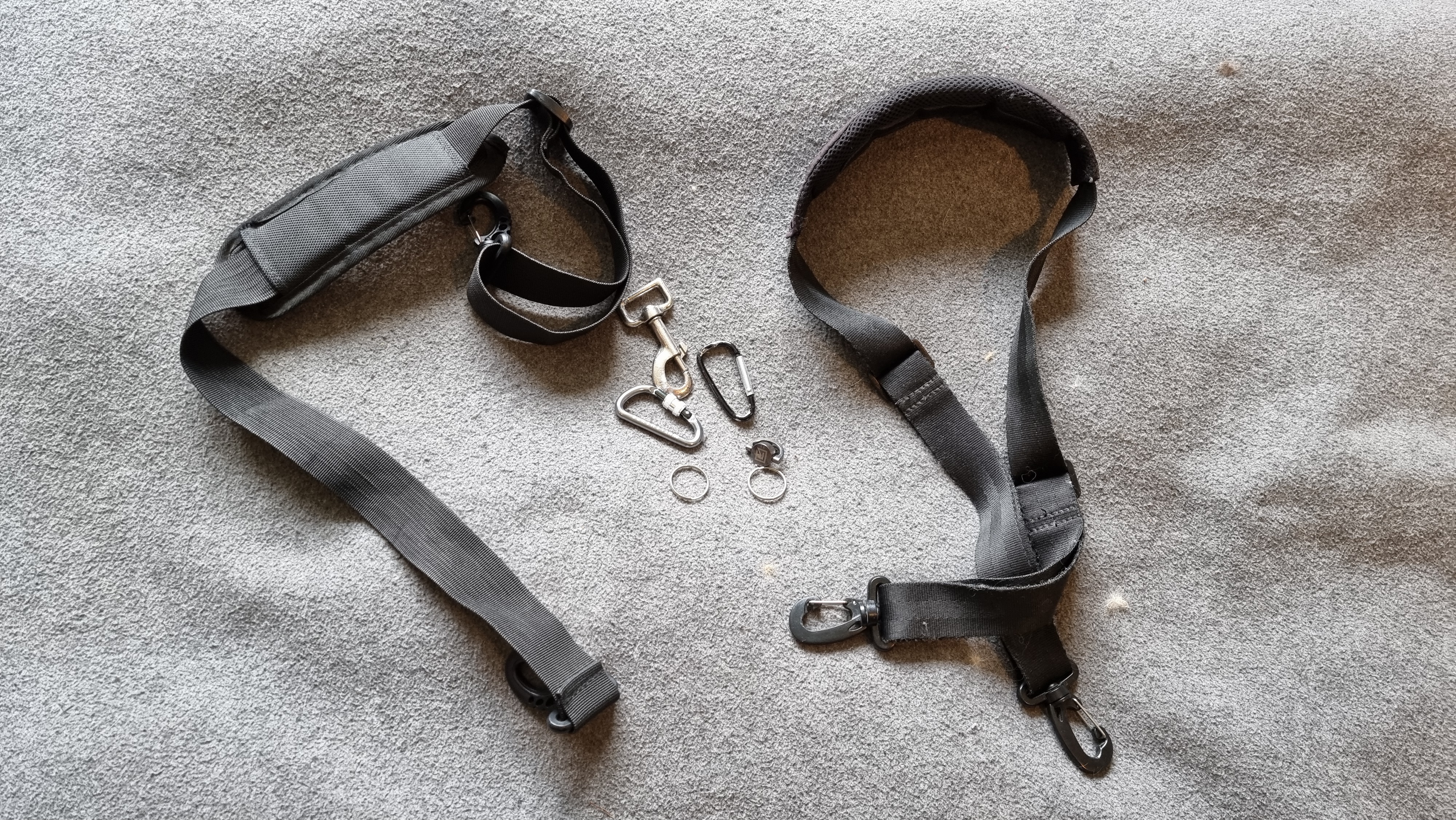 Essentially those commercial harnesses are all mostly a bunch of straps sewn together, and I have a load of unused straps from the numerous bags and cameras bought over the years. So I had a rummage, and came up with this lot…